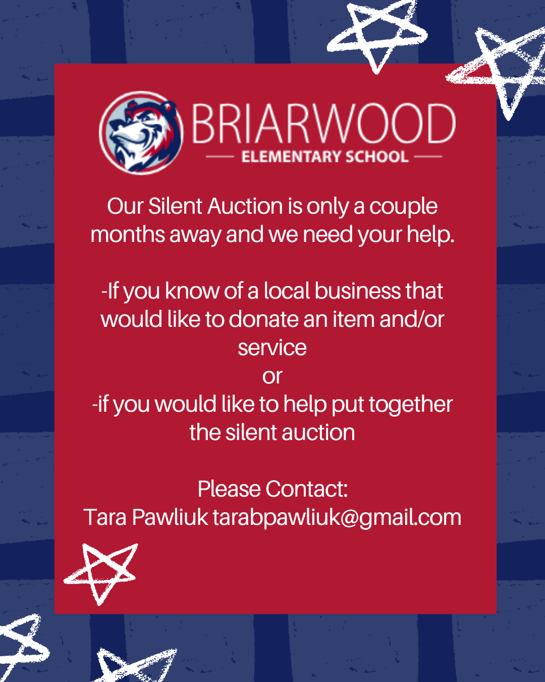 Our silent auction is just a few months away! If you know a business that would like to donate an item and/or a service -or- if you would like to help put together the silent auction, please contact: Tara Pawliuk at tarabpawliuk@gmail.com